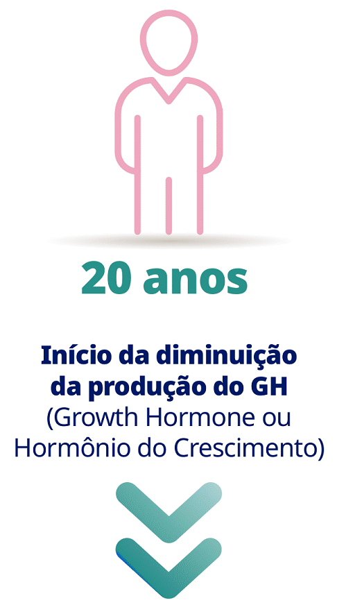 Por volta dos 20 anos, a produção de GH começa a diminuir lentamente, quando a glândula hipófise diminui sua produção. Diversos estudos indicam que adultos saudáveis, e que por algum motivo tiveram quena na produção do GH e desenvolveram repentinos e acelerados sinais de velhice, conseguiram reverter esse problema por meio de injeções de homônio de crescimento.
